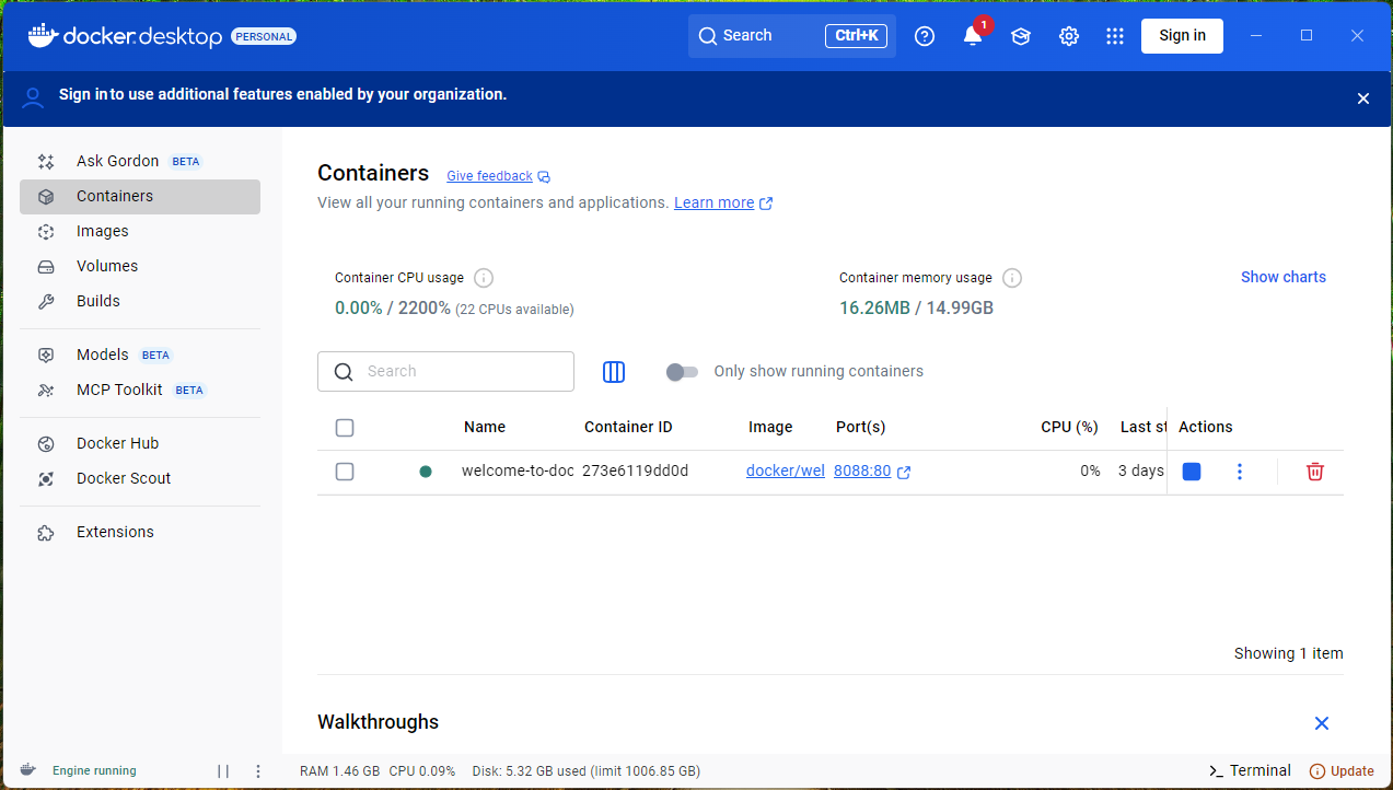 Docker Desktop makes installation easier if you do not use a package manager (which many Windows and MacOS users do not). Docker Desktop looks like this: