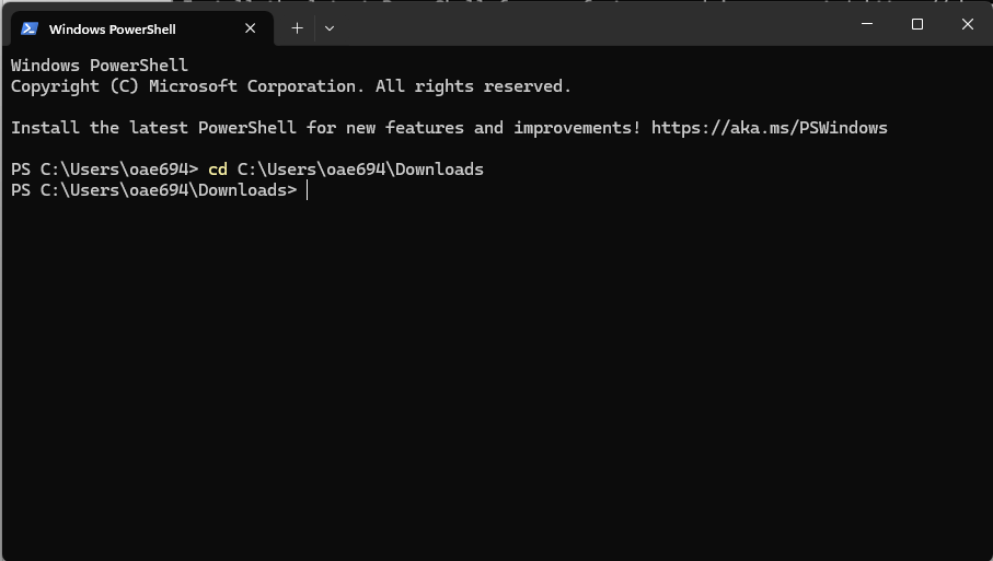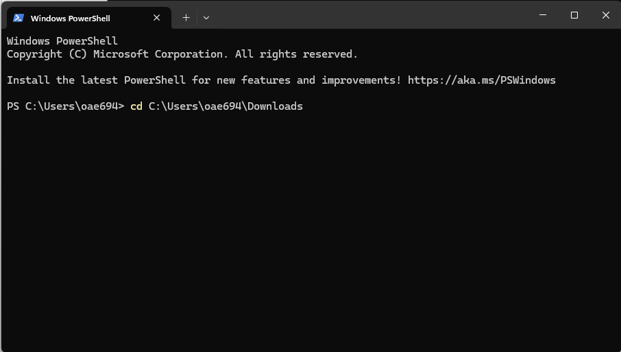 Now, we will run the file via terminal. Gruber (2024) https://www.youtube.com/watch?v=iMyCdd5nP5U shows how to do so depending on the OS. Here, we will do it for Windows. So, let’s open “Windows PowerShell”: